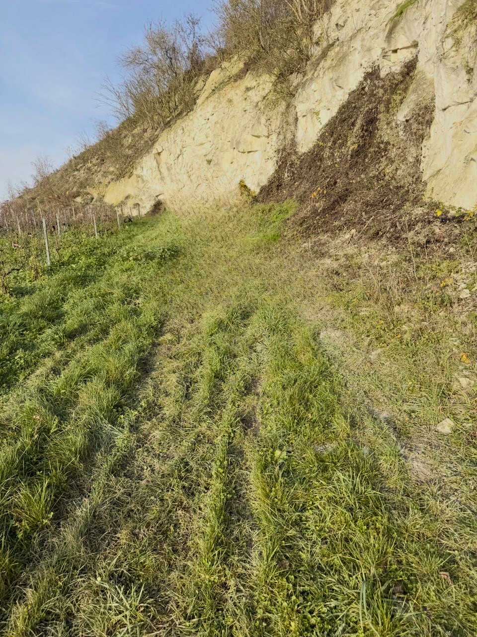 The area consists of a grass strip approximately 4 meters wide and about 15 meters long, set on a gentle incline and naturally integrated into the vineyard’s relief.